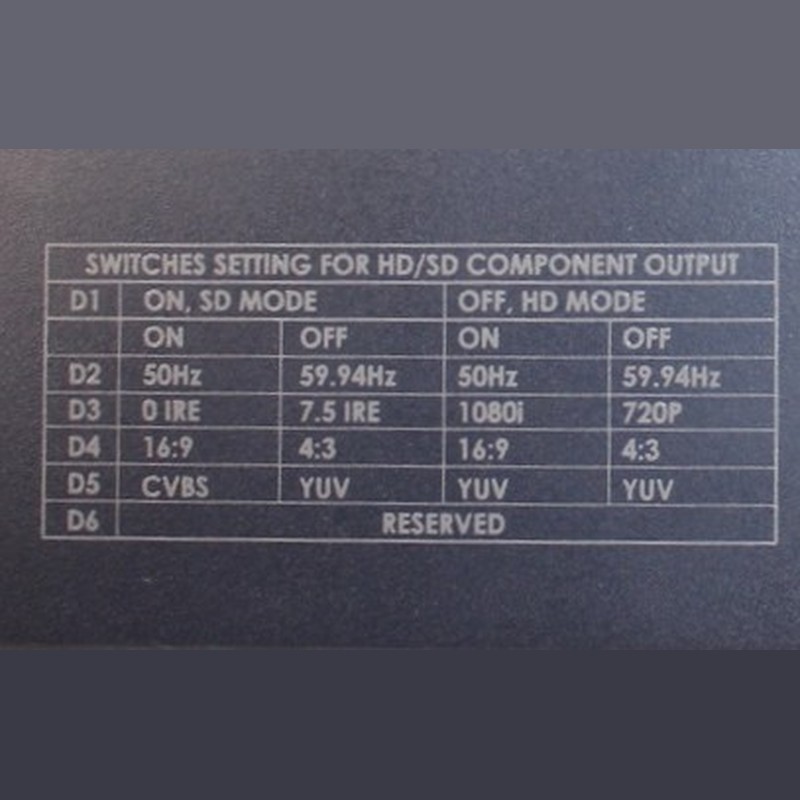• Konfiguration über DIP-Schalter (Audio-Kanäle, Output-Modus, IRE, Seitenverhältnis)